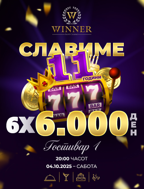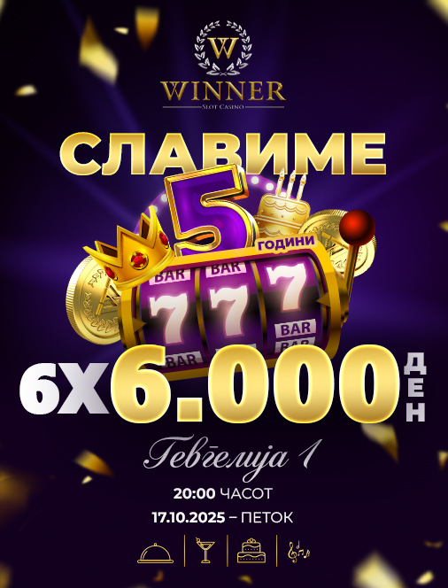 Во сите WINNER SLOT CASINO клубови ве очекува спектакуларна промоција со огромни награди и многу забава!