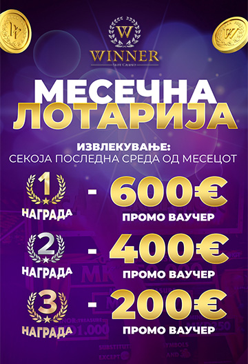Во сите WINNER SLOT CASINO клубови ве очекува спектакуларна промоција со огромни награди и многу забава!