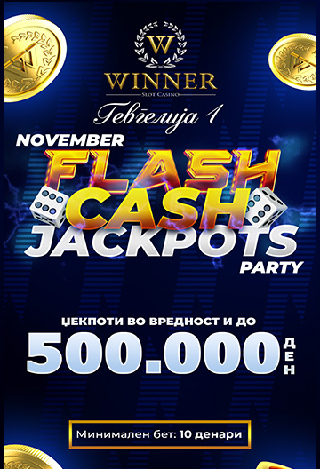 Ноември е месец на возбуда, брзи добивки и неверојатна енергија во Winner Slot Casino – Гевгелија 1! Подготви се за Flash Cash Jackpots – со дневни и викенд награди во вредност до 500.000 денари!