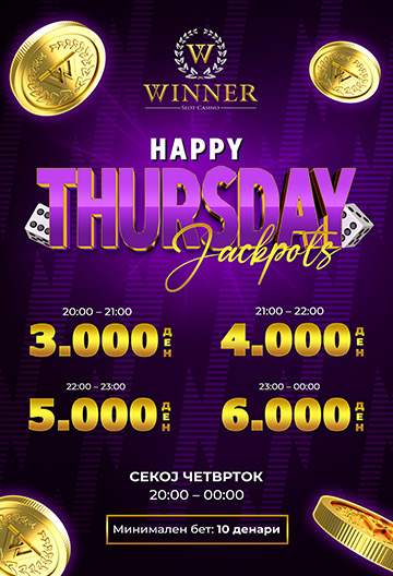 Среќата те чека секој четврток од 20:00 до 00:00 во Winner Slot Casino!